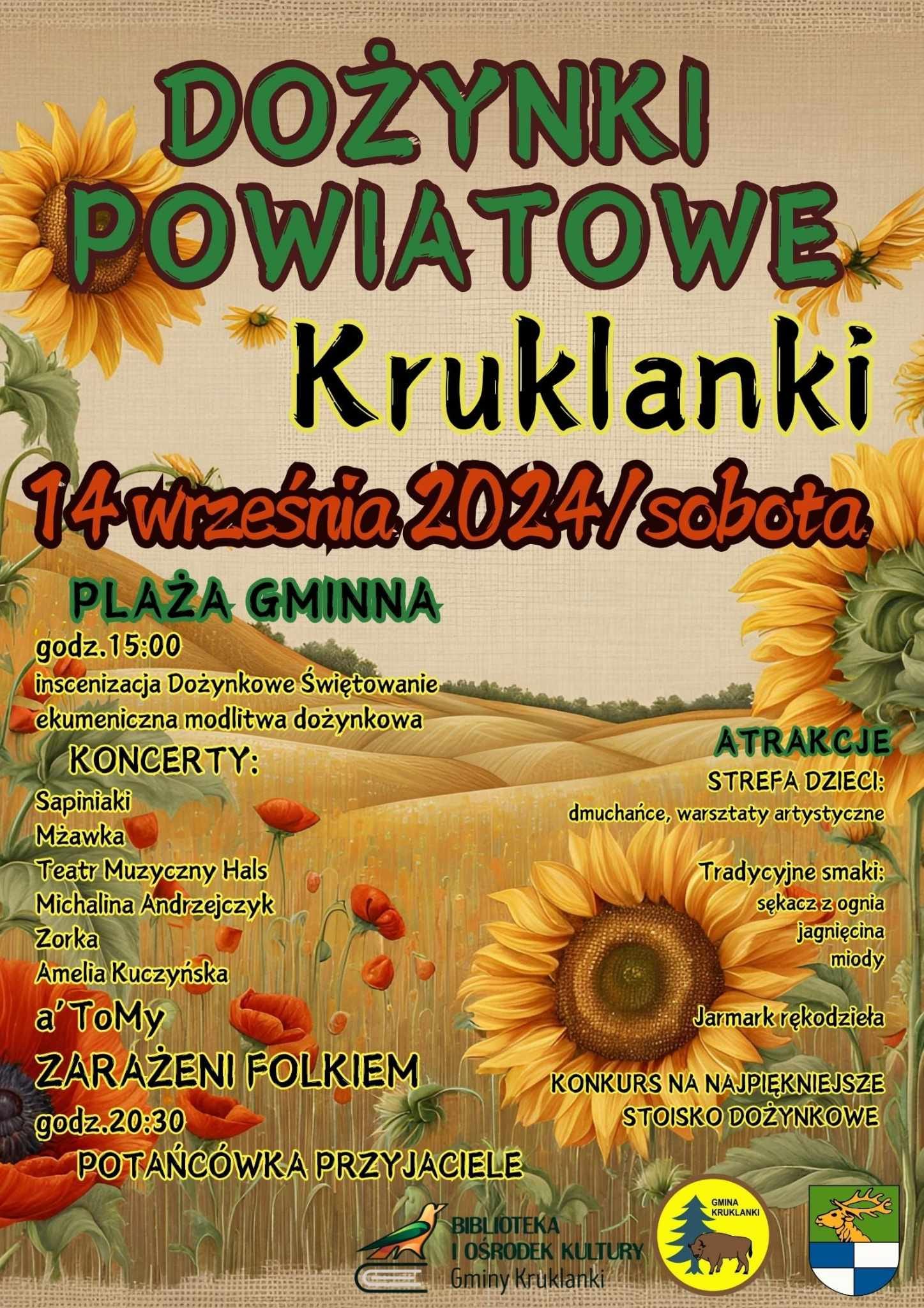 28 sierpnia 2024AKTUALNOŚCIgok Zapraszamy na Dożynki Powiatowe które odbędą się 14 września 2024 r. o godz. 15:00 na plaży gminnej.