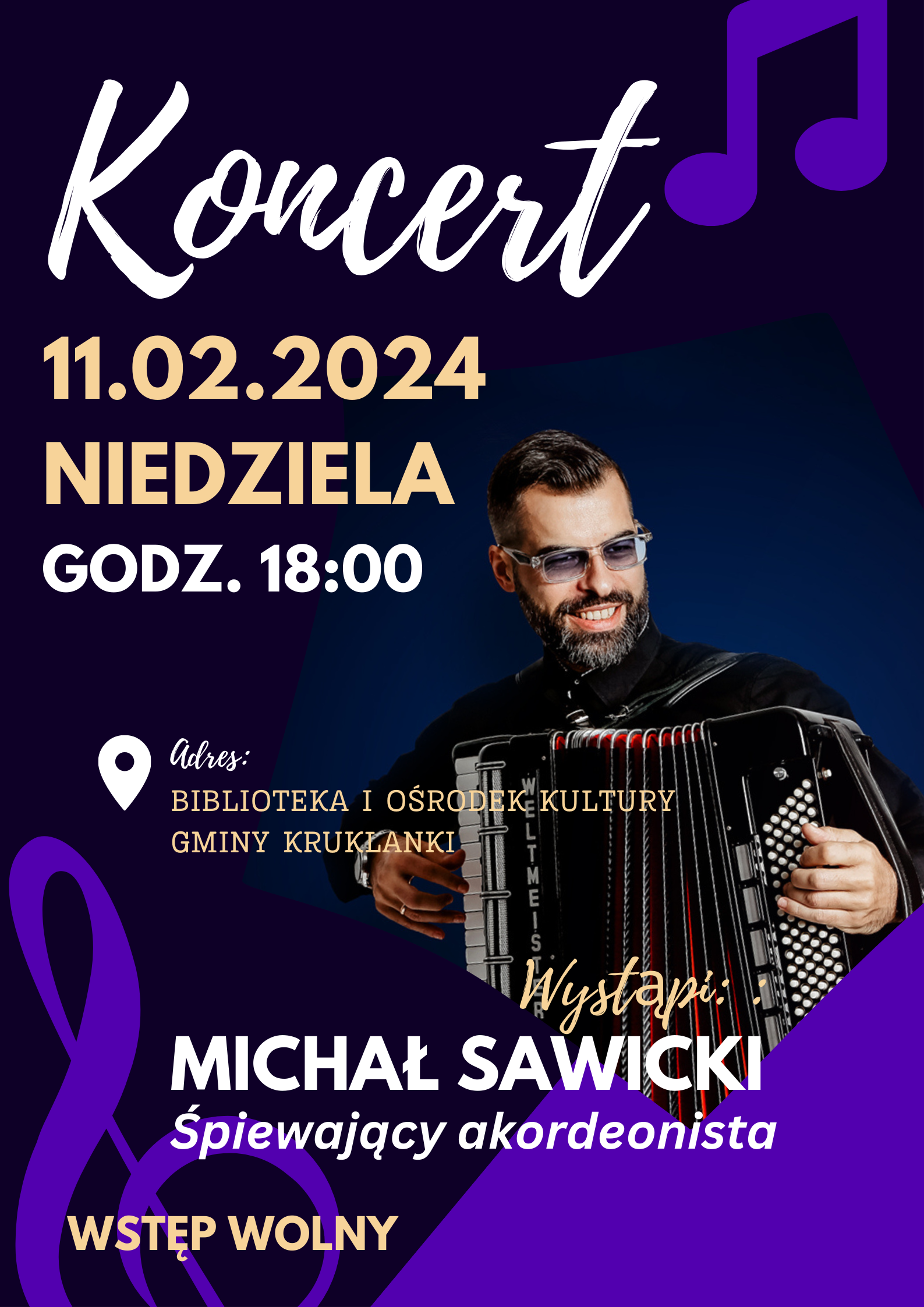 Zapraszamy na koncert mistrza akordeonu Michała Sawickiego, który odbędzie się już w tą niedzielę o 18:00.