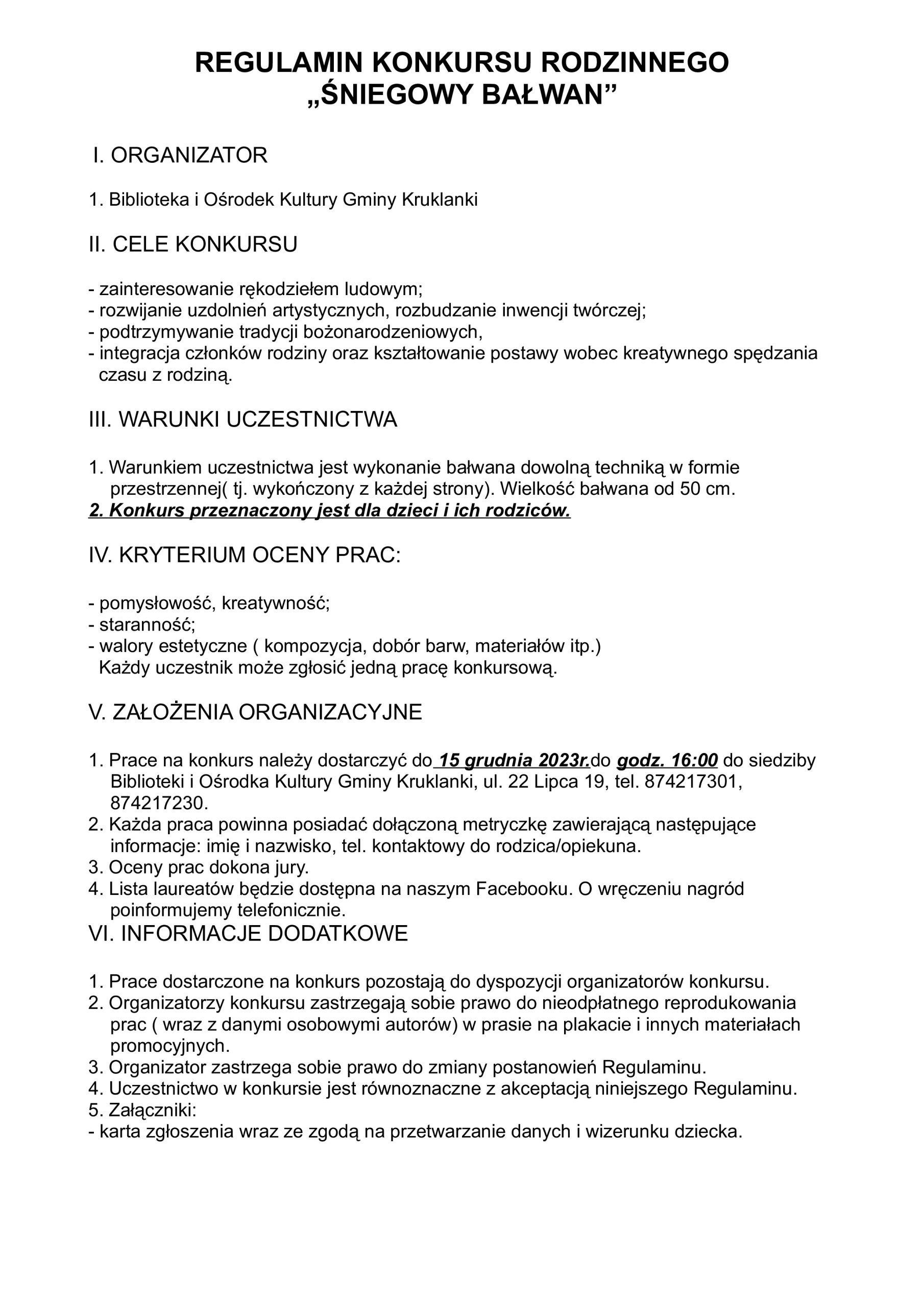 • OŚRODEK KULTURY: dyrektor@gokkruklanki.pl