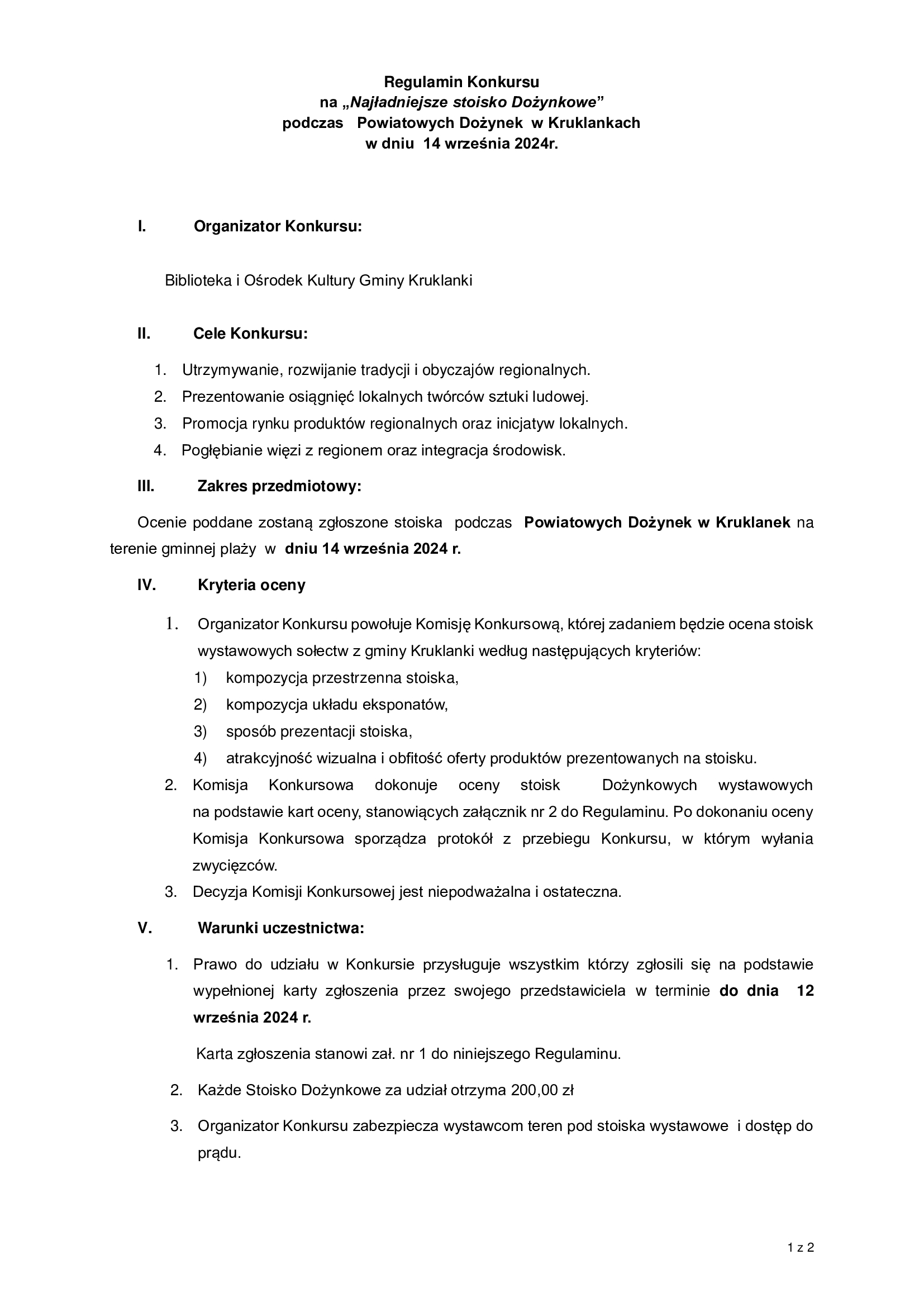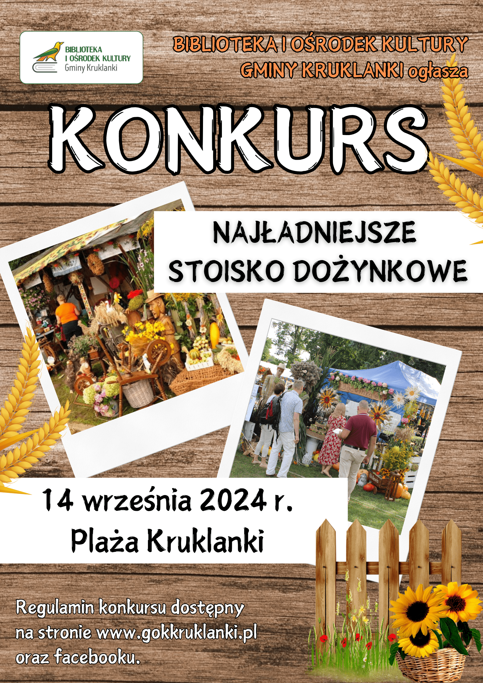 13 sierpnia 2024AKTUALNOŚCIgok Serdecznie zapraszamy do udziału w konkursie na „Najładniejsze Stoisko Dożynkowe 2024 r.”
