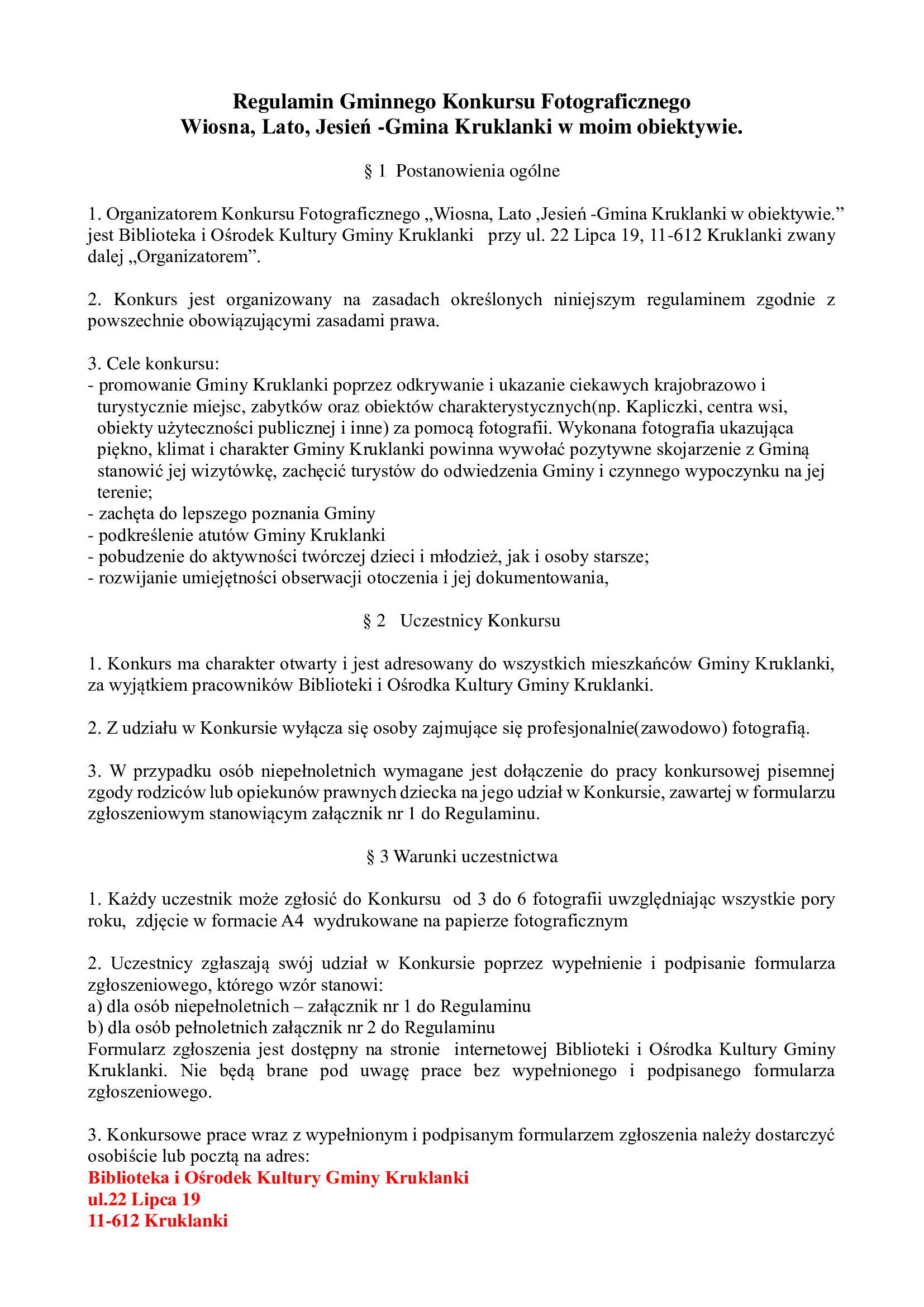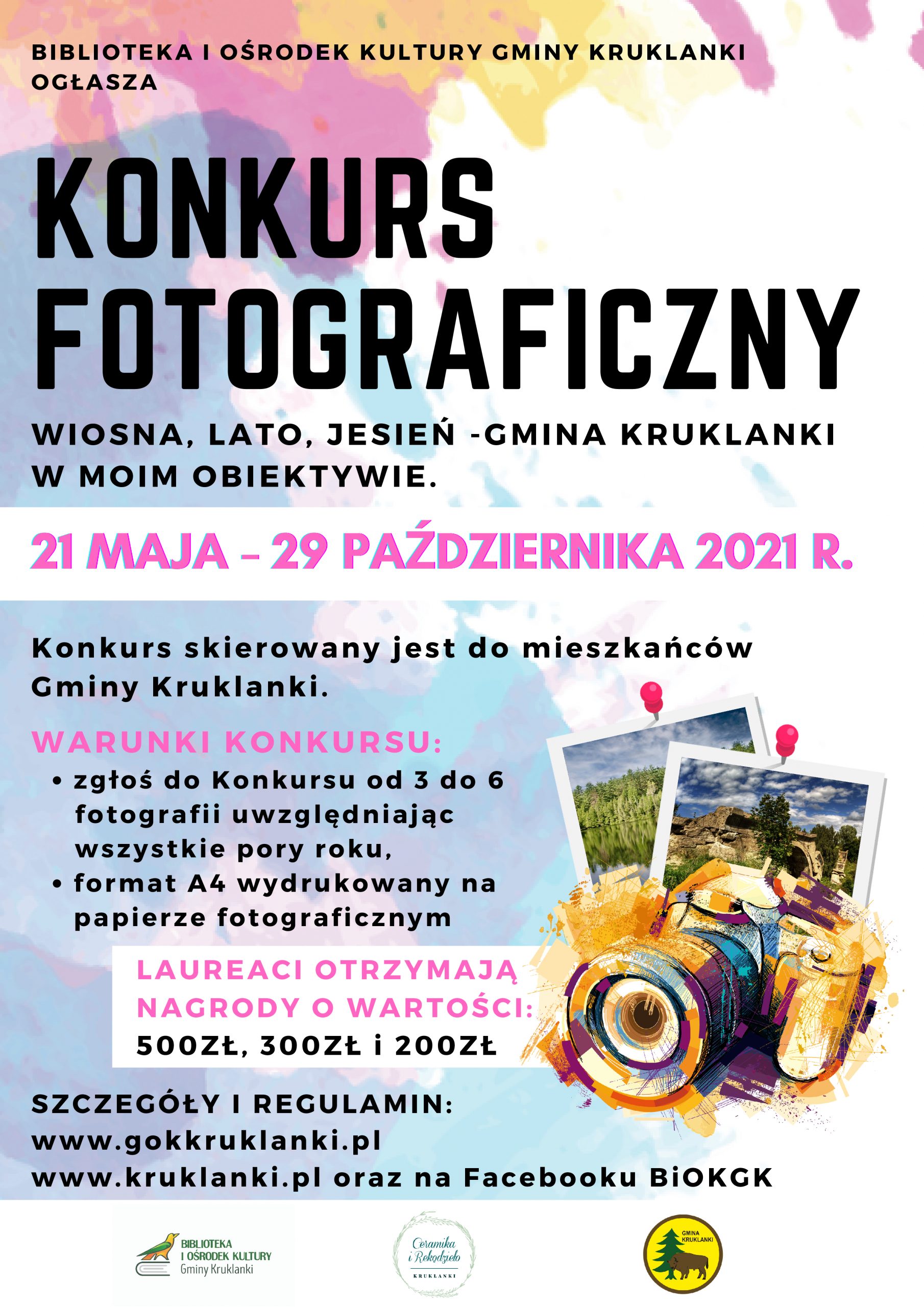 Serdecznie zachęcamy mieszkańców naszej gminy do udziału w konkursie fotograficznym pt. „Wiosna, Lato, Jesień -Gmina Kruklanki w moim obiektywie". Proponujemy aby od tej chwili, każdy większy i mniejszy miłośnik fotografii, podczas codziennego spaceru miał przy sobie aparat fotograficzny, co dziś nie jest wielką sztuką. Tak naprawdę, sztuką jest go dziś przy sobie nie mieć. Na zdjęcia czekamy do 29 października 2021 roku do godziny 16:00. Dla zwycięzców czekają atrakcyjne nagrody!