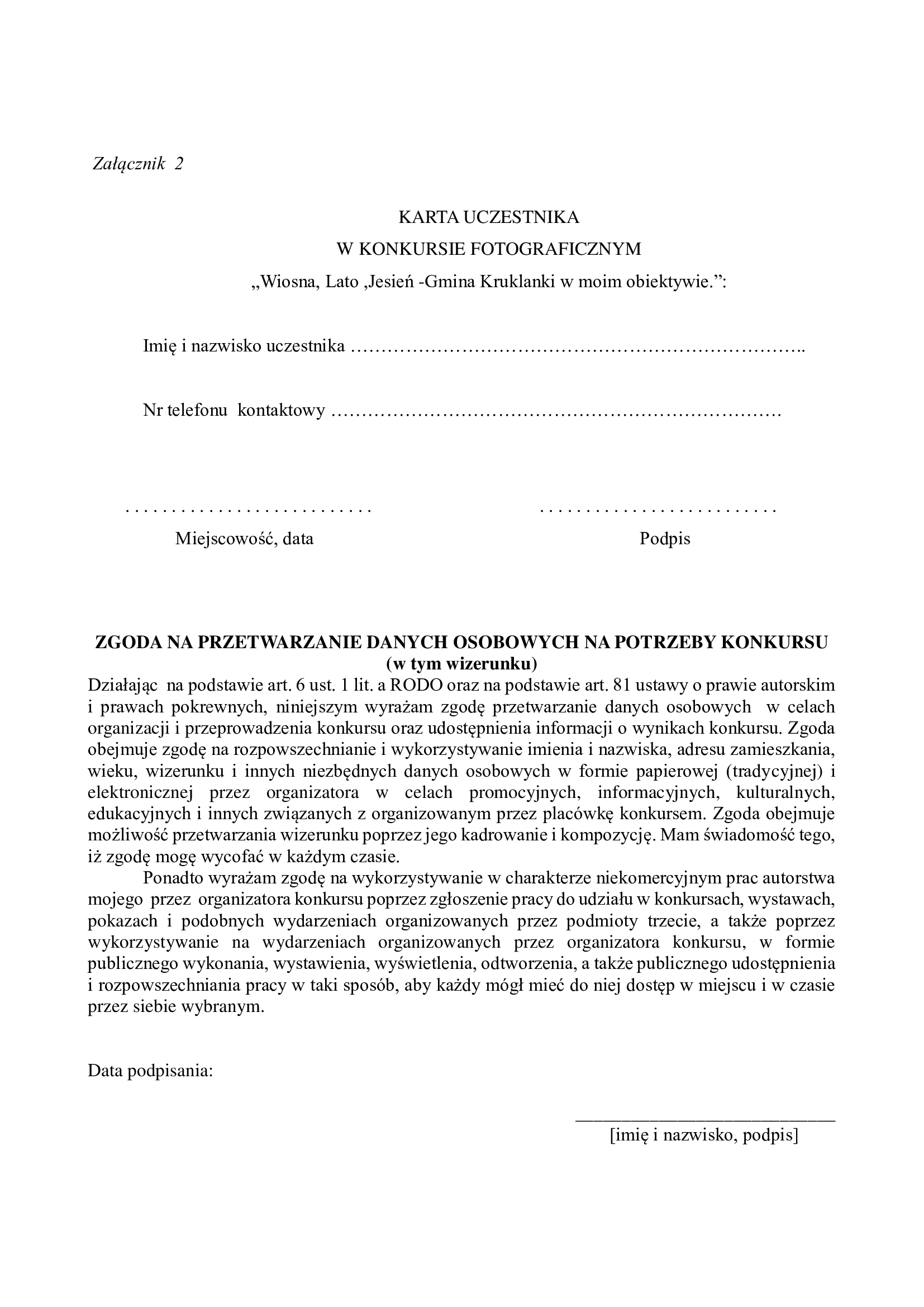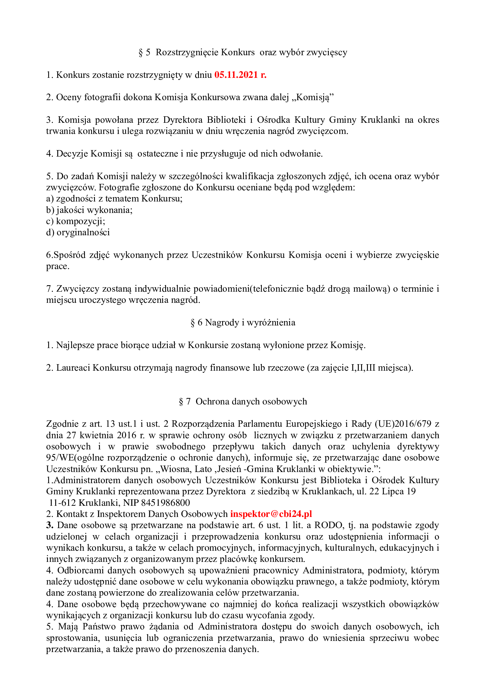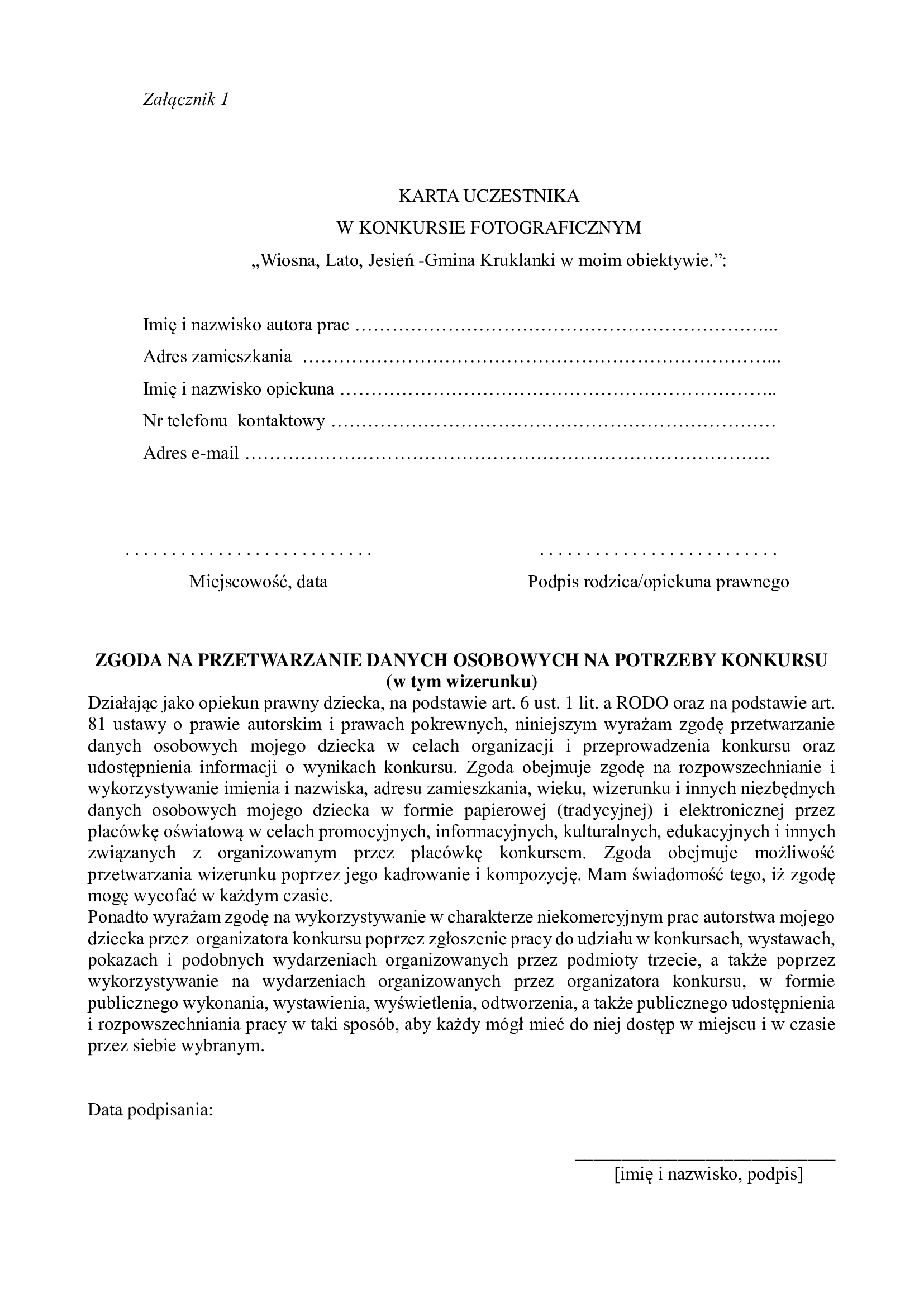 Drodzy mieszkańcy naszej gminy. W związku z małym zainteresowaniem konkursem fotograficznym przedłużamy termin składania prac do 30 listopada.