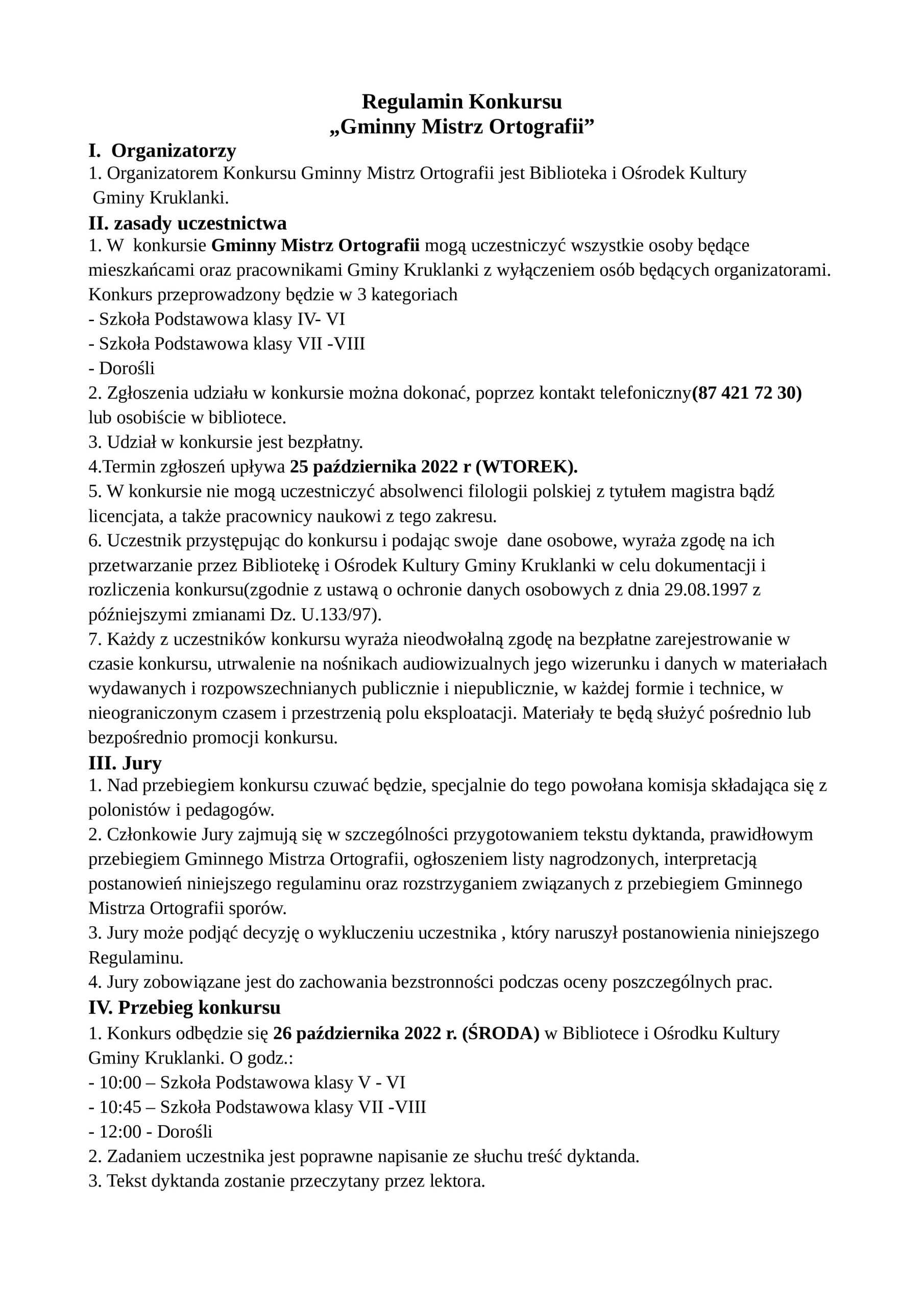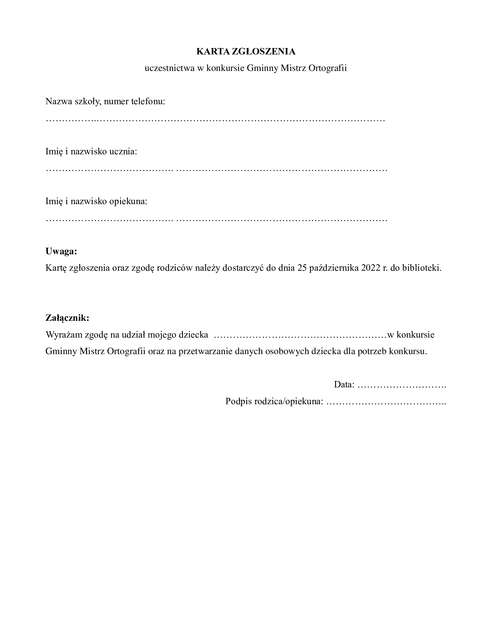 5 października 2022AKTUALNOŚCIgok Zapraszamy do wzięcia udziału w VII edycji konkursu Gminny Mistrz Ortografii 2022.