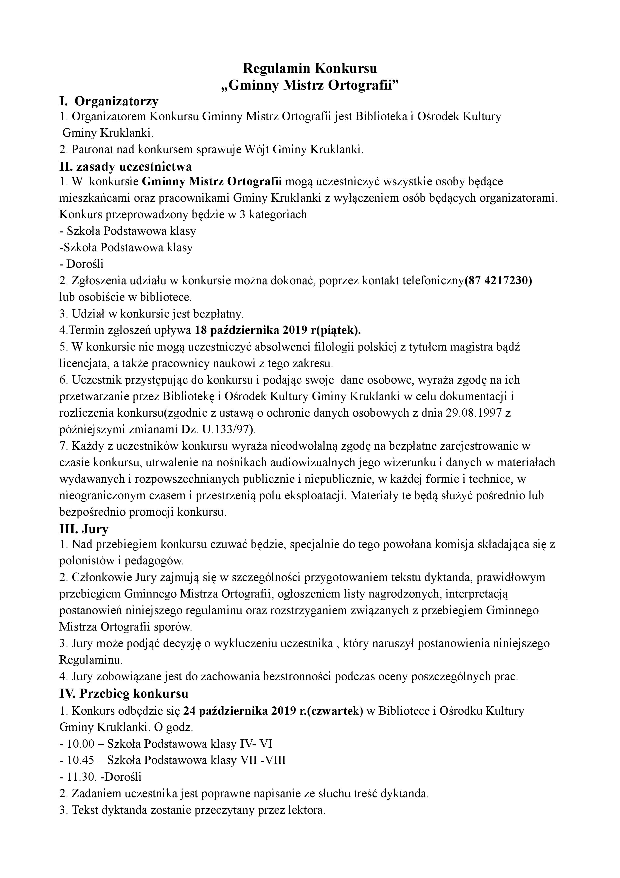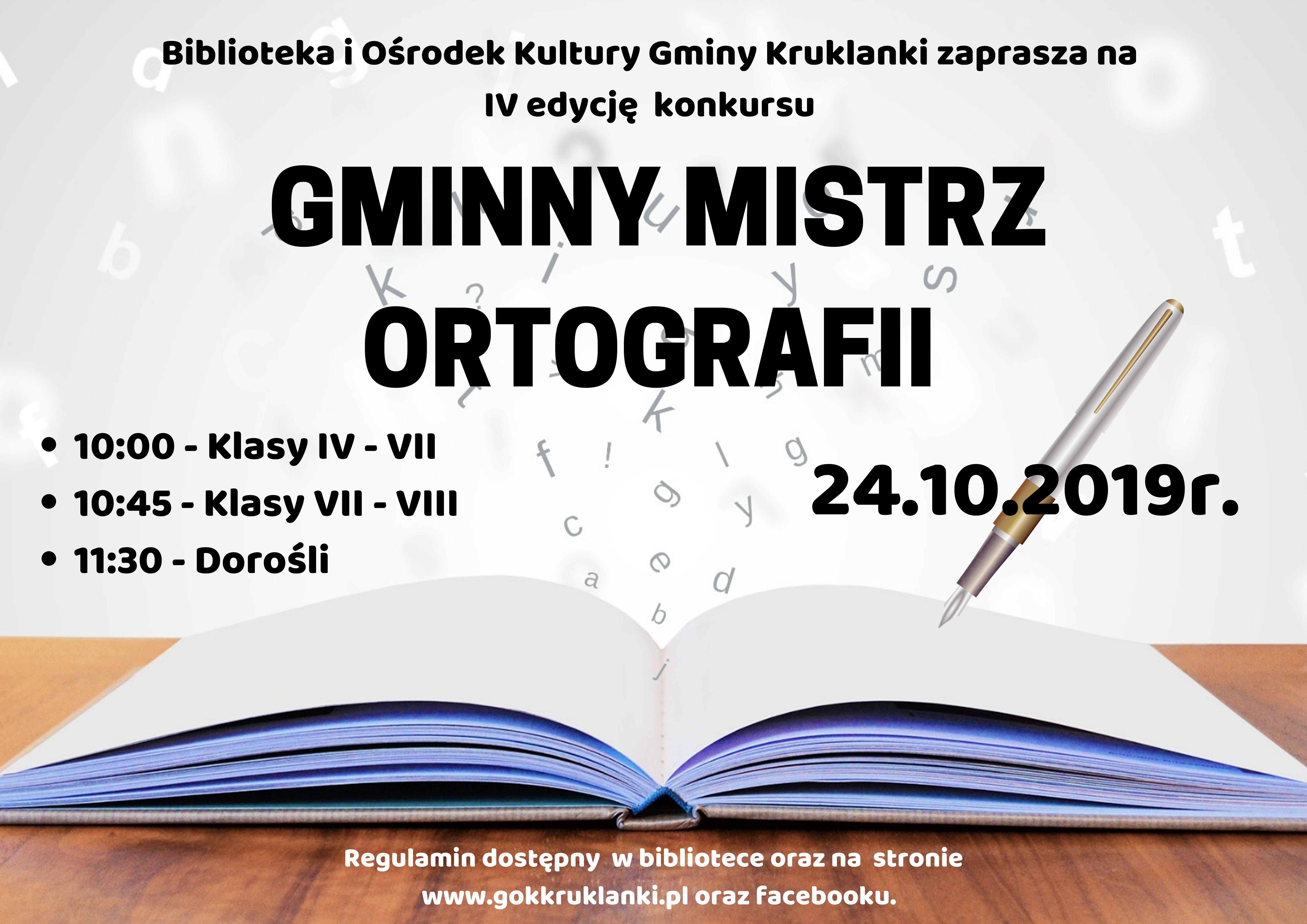 2 października 2019AKTUALNOŚCIgok 24 października odbędzie się już IV edycja Gminnego Mistrza Ortografii. Serdecznie zapraszamy dzieci i dorosłych.