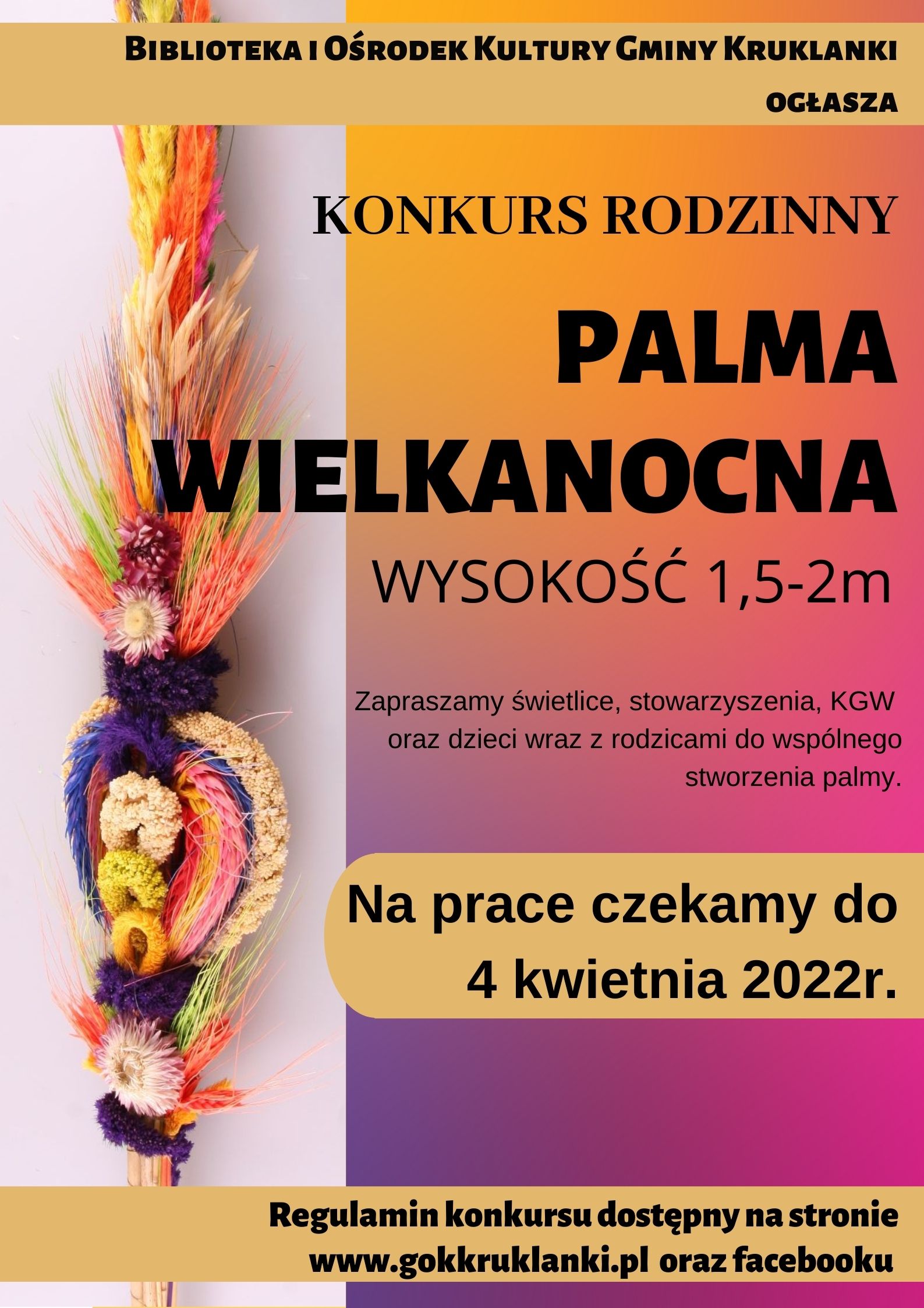 11 marca 2022AKTUALNOŚCIgok Serdecznie zapraszamy do wzięcia udziału w konkursie wielkanocnym "Palma Wielkanocna".
