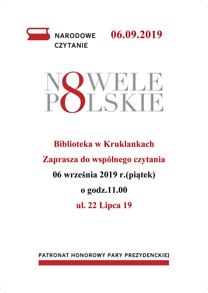 3 września 2019AKTUALNOŚCIgok Serdecznie zapraszamy na NARODOWE CZYTANIE dnia 06.09.2019 r. o godz. 11:00.