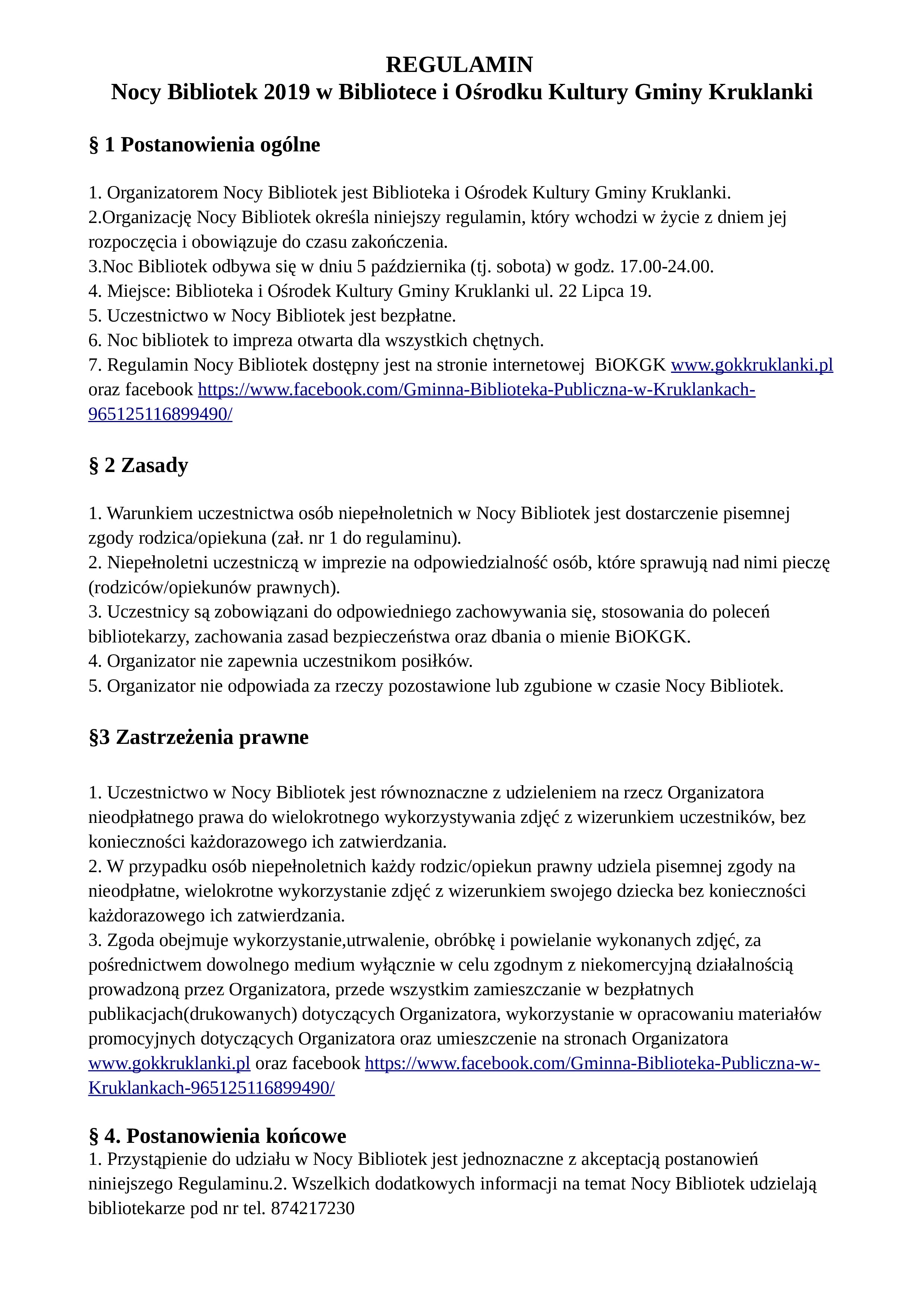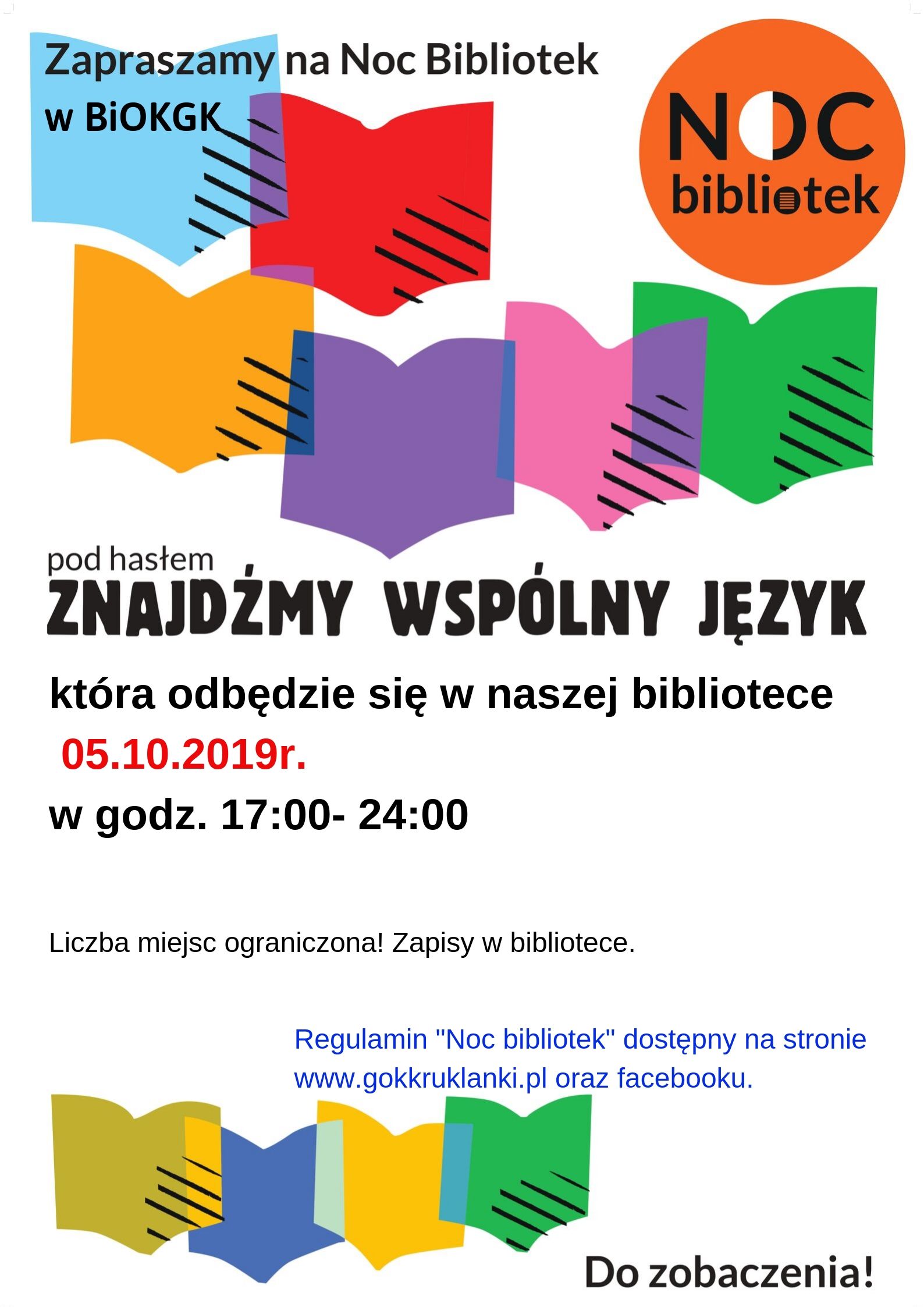 23 września 2019AKTUALNOŚCIgok Serdecznie zapraszamy dzieci i młodzież na "Noc Bibliotek" dn. 5 października w godz. 17:00-24:00.