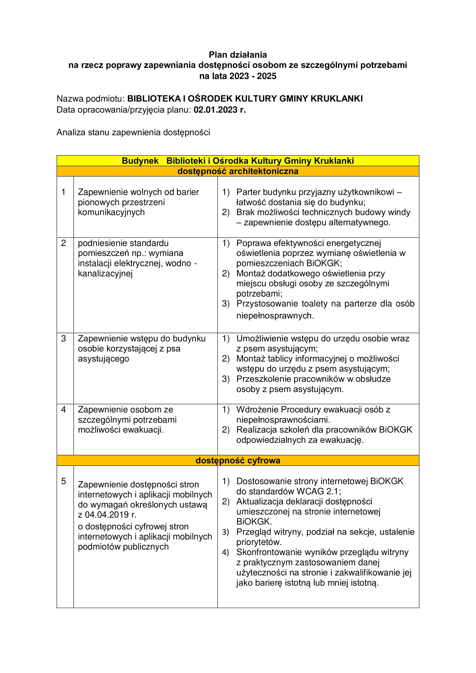 PLAN DZIAŁANIA NA RZECZ POPRAWY ZAPEWNIENIA DOSTĘPNOŚCI OSOBOM ZE SZCZEGÓLNYMI POTRZEBAMI NA LATA 2023-2025