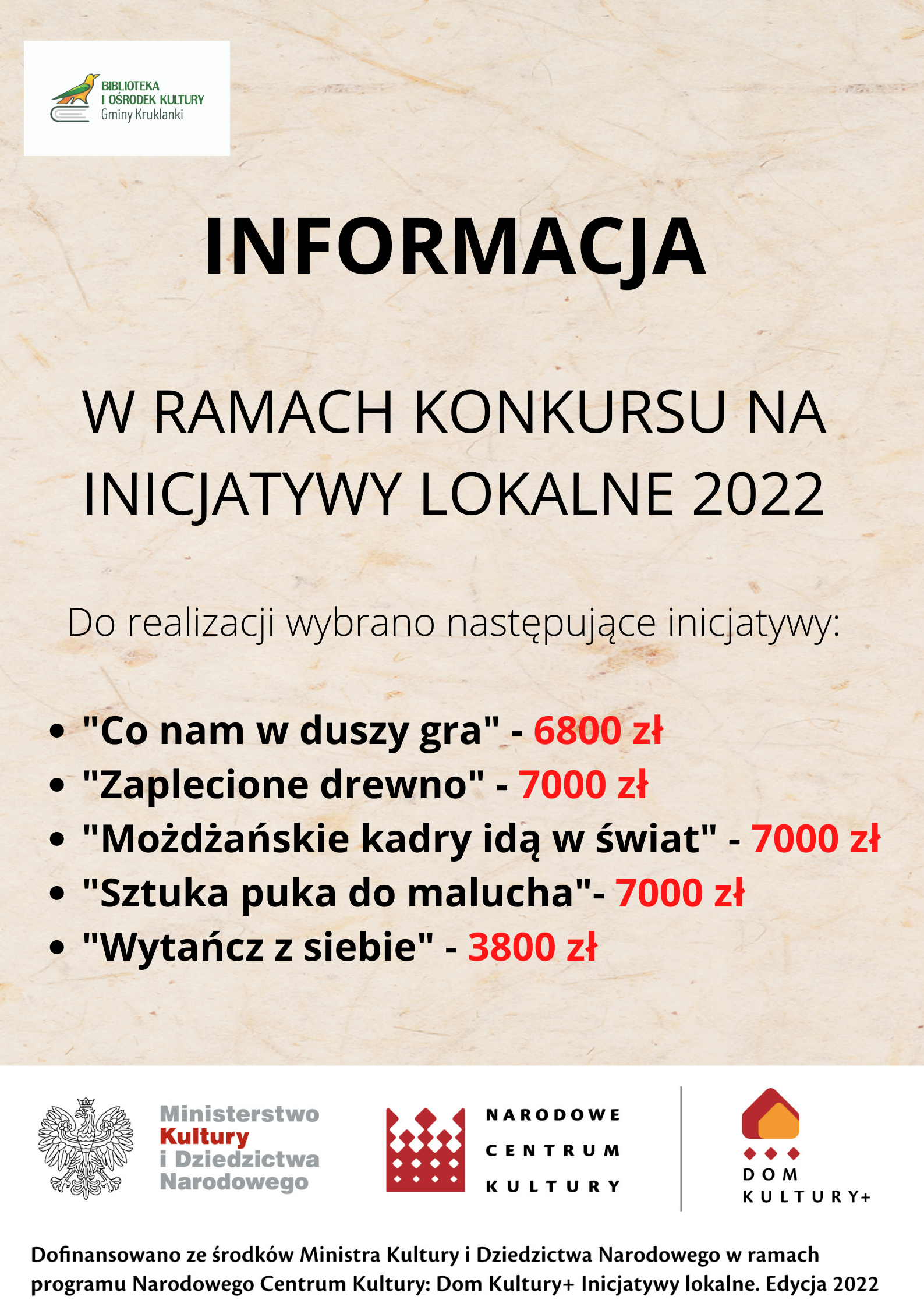 WYNIKI KONKURSU NA INICJATYWY LOKALNE 2022